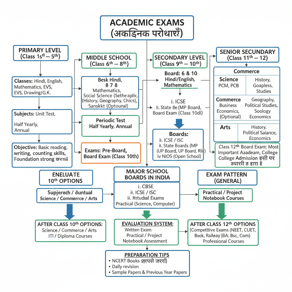 Primary, Middle, Secondary, Senior Secondary :सेसबं धिं धित होती हैं, उन्हें Academic Exams कहतेहैं। b