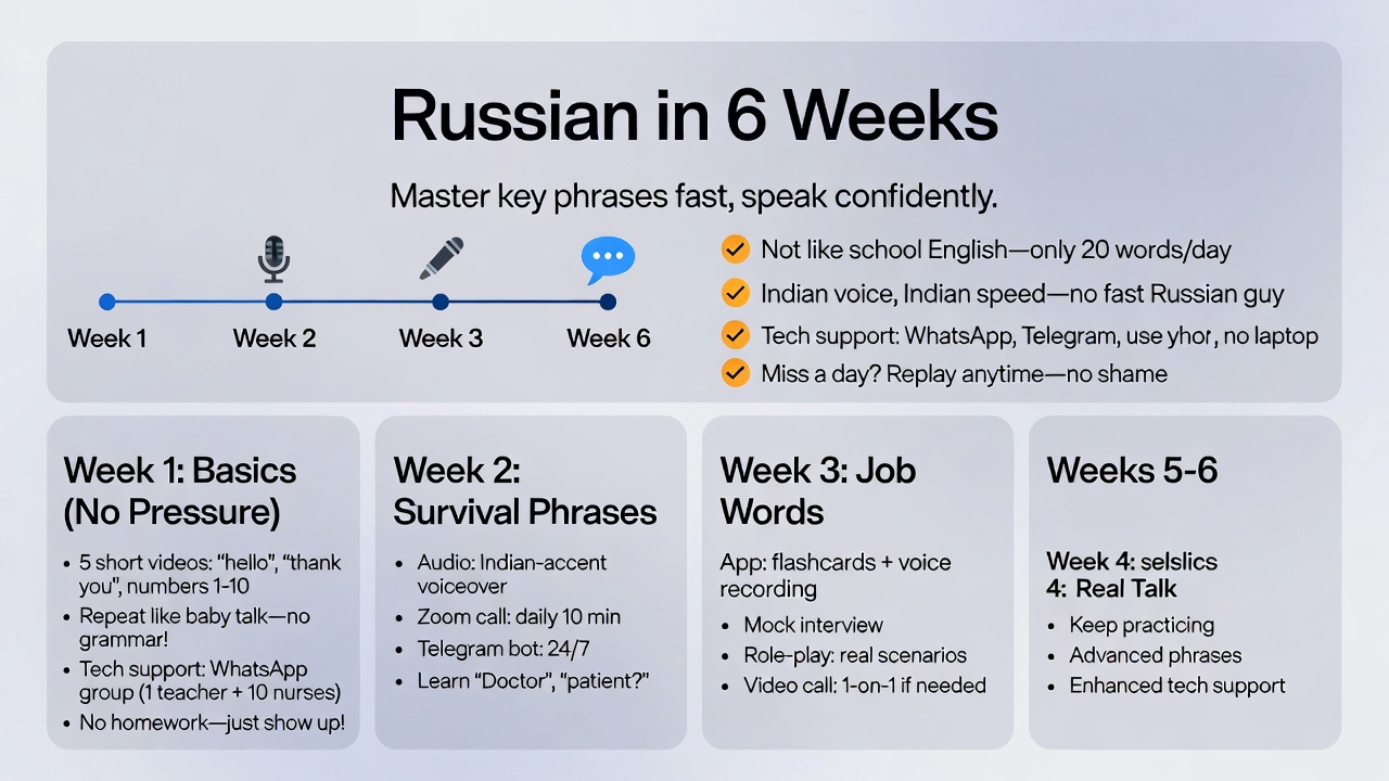 Who It’s For Indian nurses heading to Russia/Europe. No prior Russian needed—just a phone, WhatsApp, and willingness to practice.